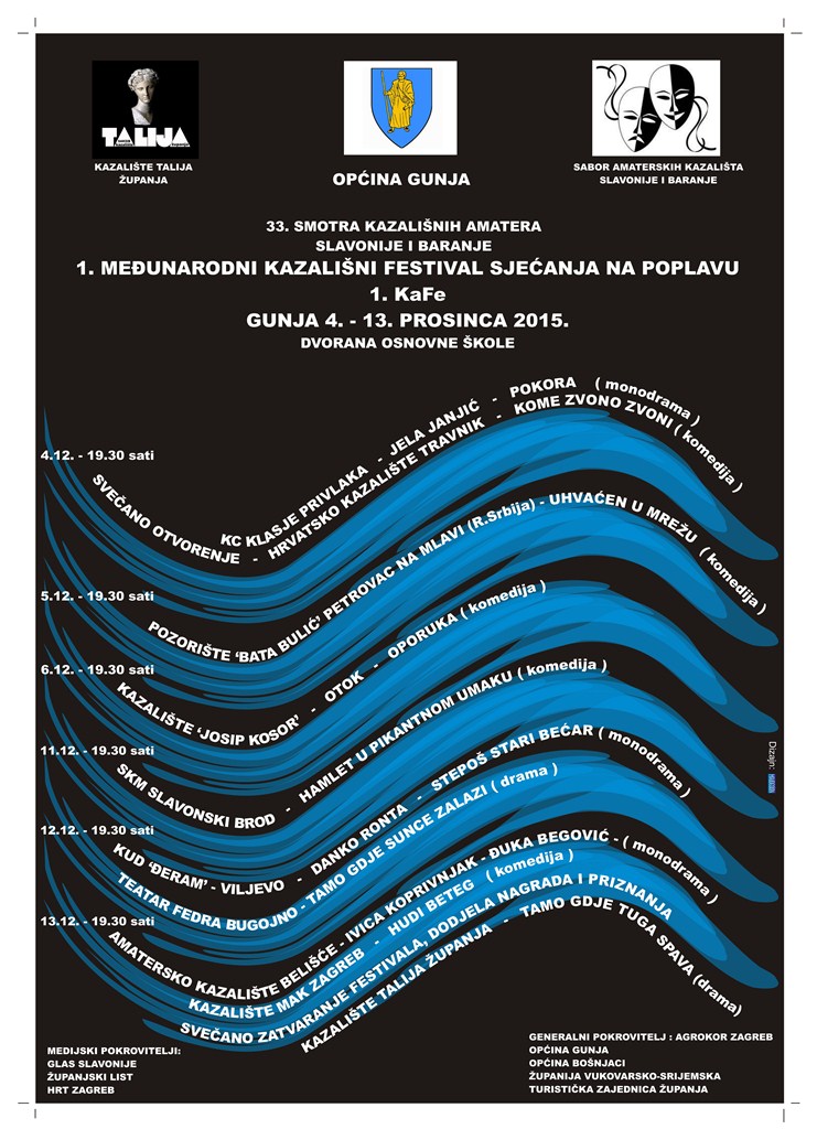 U organizaciji kazališta Talija Županja i Općine Gunja te načelnika Hrvoja Lucića, u petak 04.12.2015. otvorili smo prvo izdanje kazališnog festivala u Gunji, 1.KaFe i 33. Smotru amaterskih kazališta slavonije i baranje.