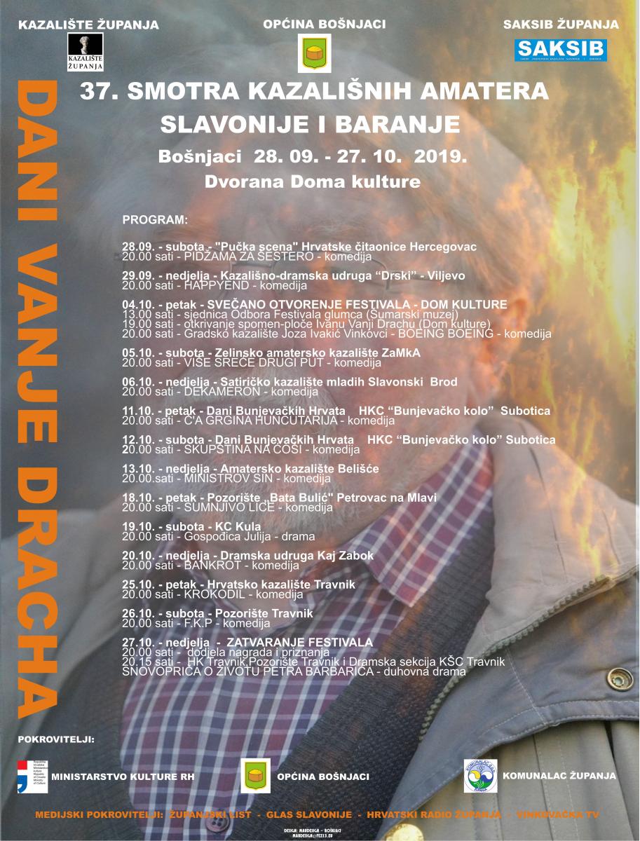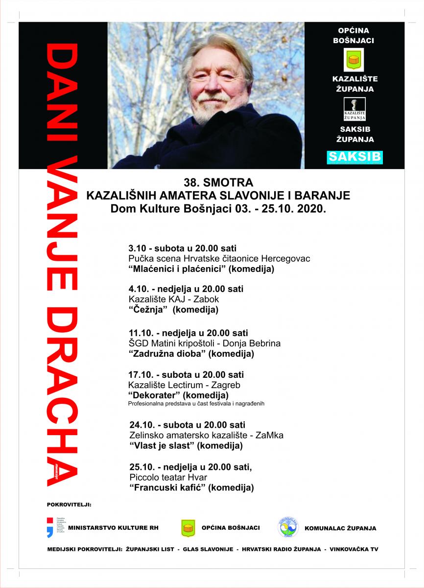 U subotu 3. Listopada počinje najstariji,i jedan od najboljih,Slavonsko-baranjski kazališni festival,38. Smotra kazališnih amatera Slavonije i Baranje,koji od prošle godine nosi i naziv Dani Vanje Dracha.